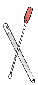 | You may also be asked to provide a swab sample. This could be for your throat, penis, anus, or front hole/vagina. You will be provided a different swab for each of the different areas. It’s likely that you will do this swab test yourself while in a bathroom. It’s important to take your time, there is no rush. It’s better for you to be comfortable and confident and take a little longer to make sure you get an accurate sample. If you need to provide a swab you will be given a swab that looks like this: | ![]() |